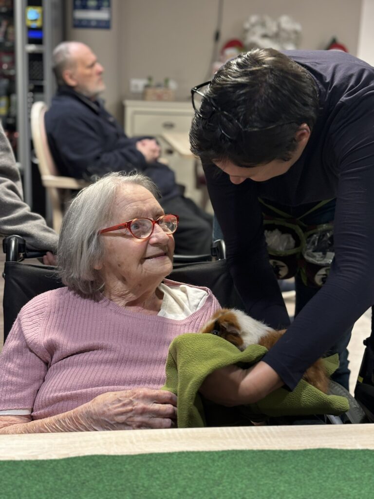 Autre moment très attendu : la venue de la Ferme de Lulu au sein de l’établissement. Lapins, cochons d’Inde et autres petits animaux ont permis un instant tendre et apaisant, suscitant sourires, souvenirs et échanges. Une parenthèse de douceur particulièrement appréciée par les résidents.