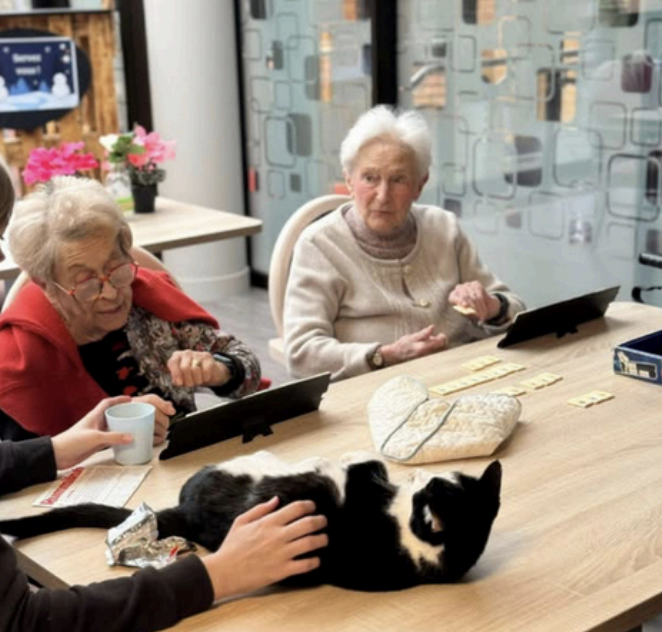 Les temps de convivialité partagés avec les bénévoles ont aussi contribué à faire de ce mois de février une période particulièrement agréable. Lors d’un après-midi autour de jeux de société, les résidents ont pu échanger, rire et profiter d’un moment simple, mais chaleureux. La présence de Polo, le chat de la résidence, a ajouté une touche de douceur à ce rendez-vous déjà très apprécié. Ces instants comptent beaucoup dans la vie quotidienne, car ils nourrissent les liens, apaisent et créent une atmosphère familière et rassurante.
